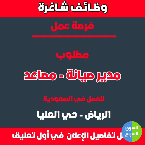 إعلان توظيف - مدير صيانة مصاعد في الرياض